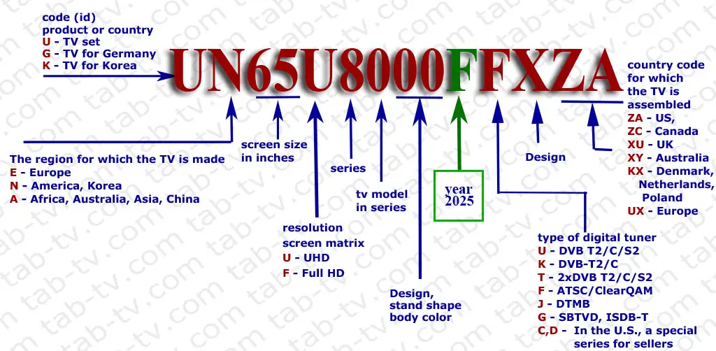 - T – año del modelo de televisor
