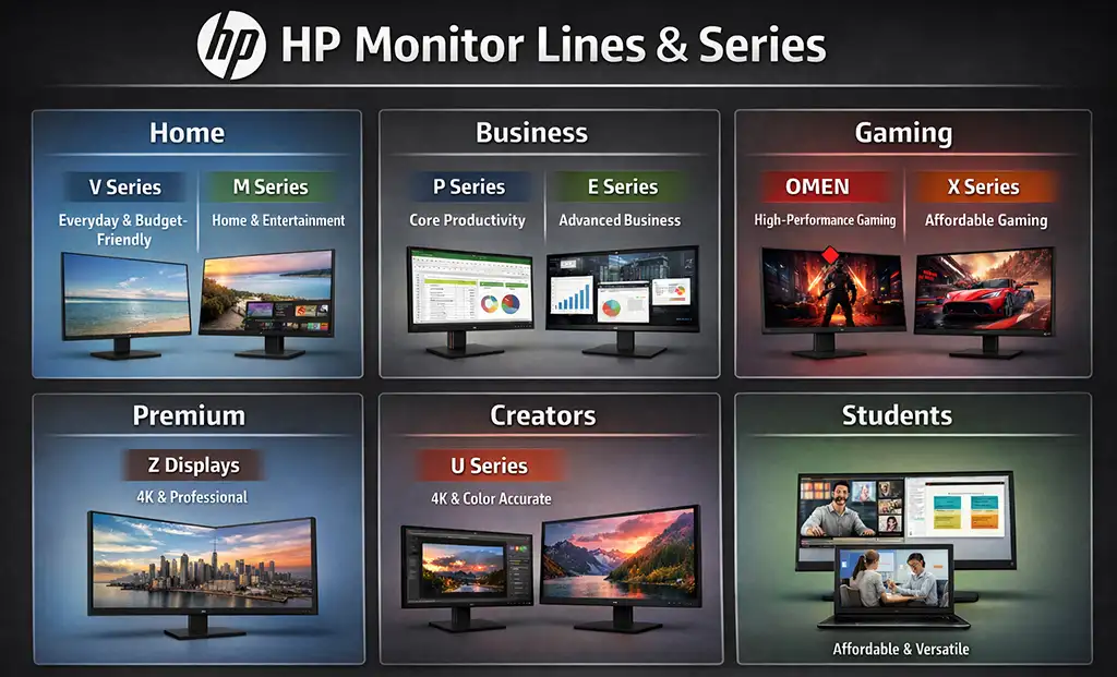 HP ofrece varias líneas de monitores, cada una diseñada para satisfacer necesidades específicas de los usuarios y alineada con estrategias de marketing. Si alguien está eligiendo un monitor para trabajar, naturalmente considerará los monitores destinados a entornos de oficina o profesionales.